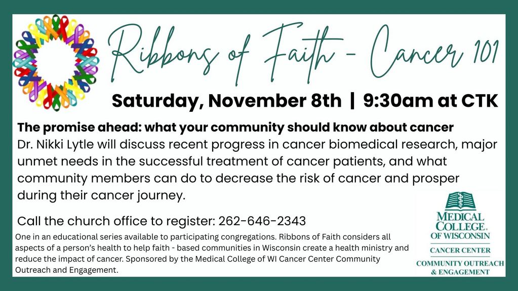 Call or email the church office to register.